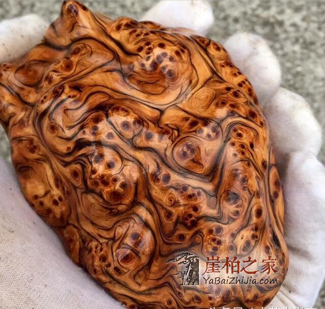 崖柏老料、陈化料皮色为金黄色、深黄褐色(阳光下为红色),崖柏金黄色的肉质还是很不错的,当然不要过于相信一些网络销售商家的宣传图,一定要在正常光照下上手观看,这样最好。