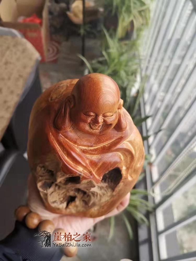太行陈化红油崖柏根雕作品『开心弥勒』。福州根雕大师手工造。产品油性很好,香味淡雅迷人,雕刻惟妙惟肖,是居家摆设之精品。尺寸:长宽高13*11*20,重:1105g。