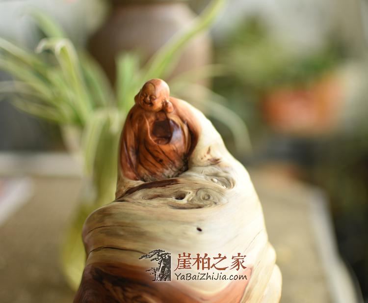 太行陈化崖柏坨坨骨料,非常完整的坨坨双色骨料,虎皮纹旋转扭曲崖柏。精雕『弥勒』。材质干净油性大,陈化崖柏味道香郁。是一件茶宠桌面摆件精品。尺寸:长宽高12*10*21cm,重975g.