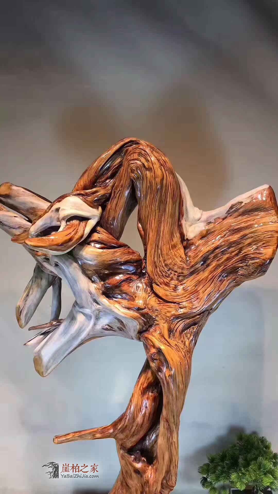 极品崖柏陈化双色料 《凤舞九天》天然独特造型 盘根错节 虎皮纹细腻流畅 干净无暇 长66宽32高98重60斤。