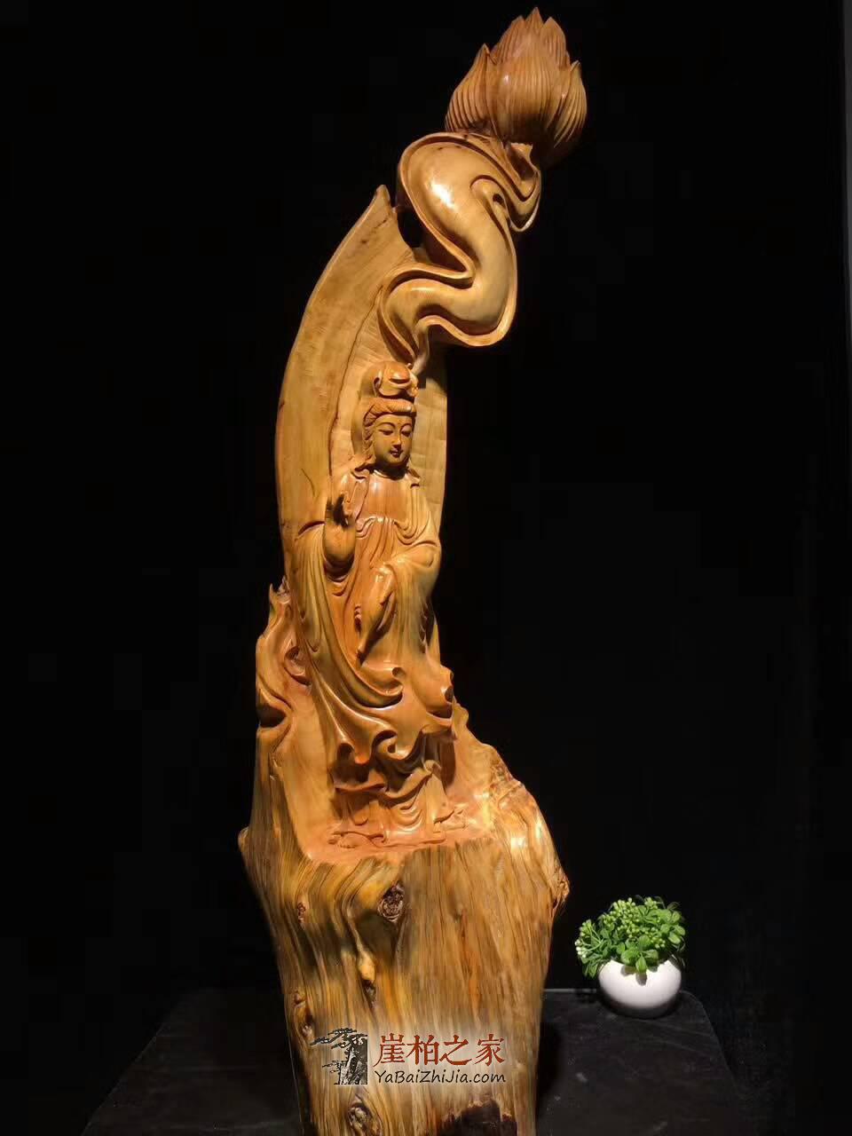 【荷叶观音】崖柏陈化料老料,自然扭转,味道香醇,纹理细腻清晰,油性爆表,仙作大师纯手工打造,手工开脸,雕工一流,观音端庄自在,整料制作,无瑕疵,收藏佳品!尺寸 高100cm 长30cm 宽22cm 重24斤
