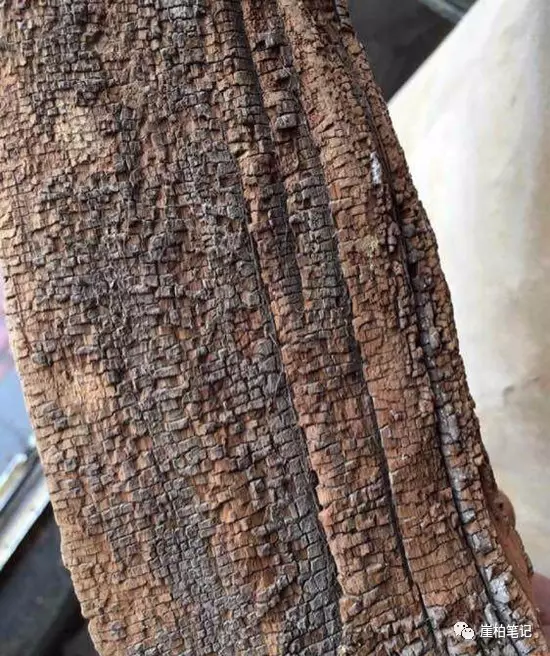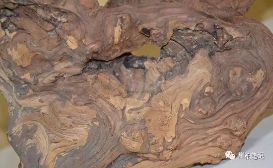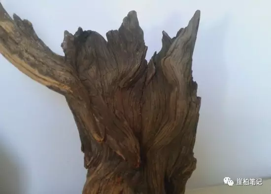 可以从两个方面来看,首先落崖料很难是一个整体,他只可能是一个崖柏的一部分,不可能整体脱落,只可能是局部脱落,落崖料多数无从循迹他的整体,他只是局部,另外落崖料的陈化层较厚,因为其在水洼里或泥土里或树叶下或哪里陈化腐烂,腐烂部分难以得到及时清理,所以他的陈化层较厚,并且有泥巴和水纹的痕迹,泡在水中,等天晴后水干涸后,在落崖料已经泡软的表皮留下水渍干涸的不规则的痕迹和斑纹。